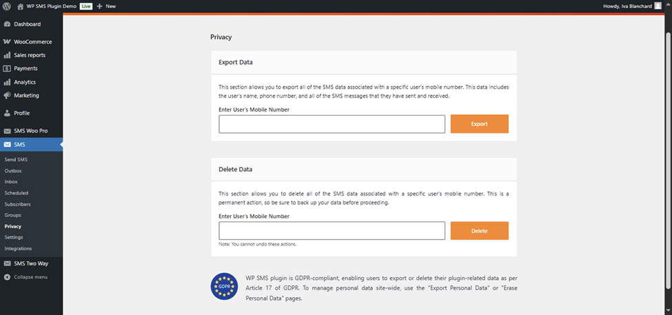 Using tools like WP SMS that are GDPR-compliant will help you comply with the regulations more easily.