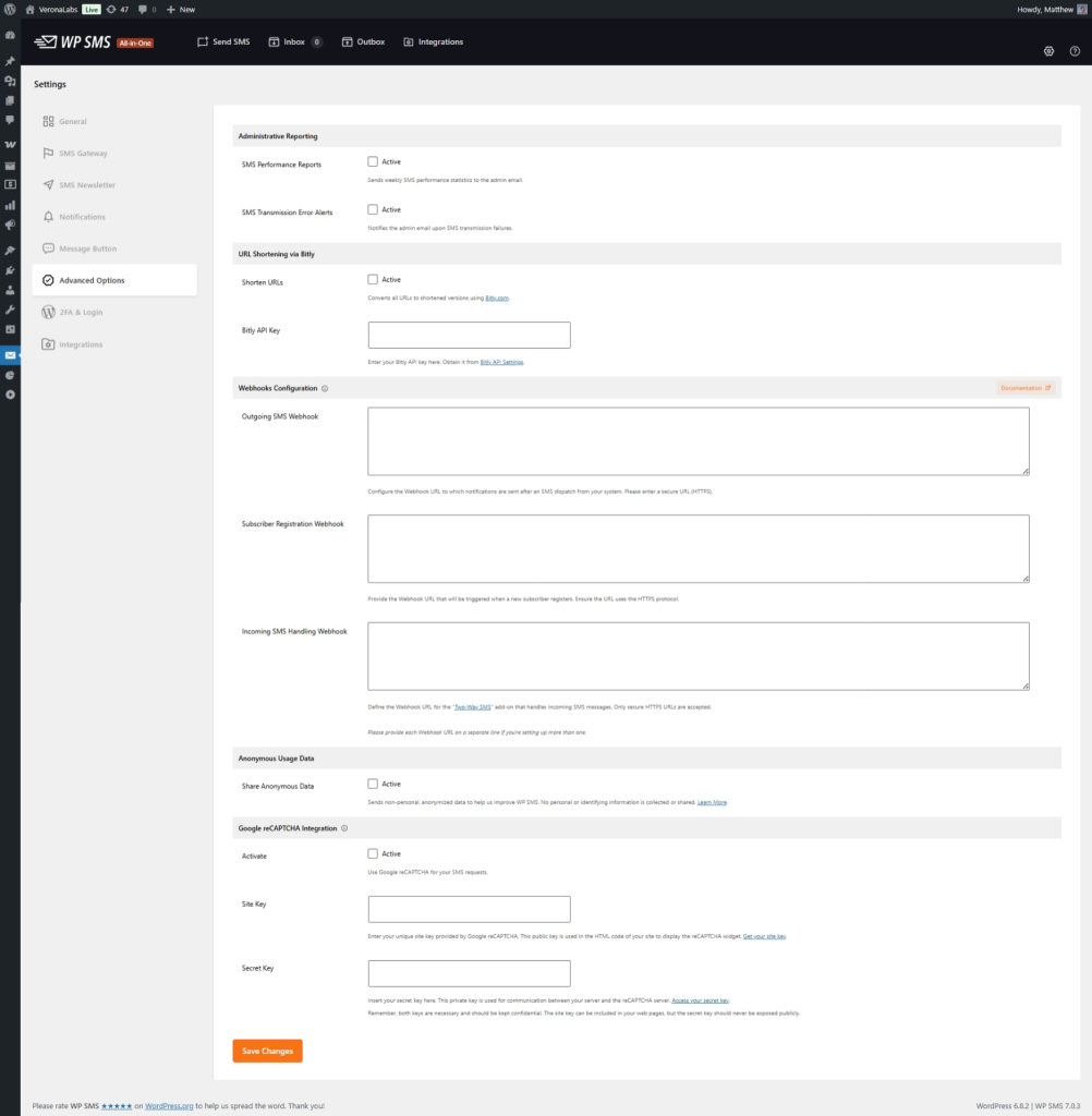 - Active: Activate this to automatically convert all URLs within your SMS messages to shortened versions using Bitly. This can help keep your messages concise.